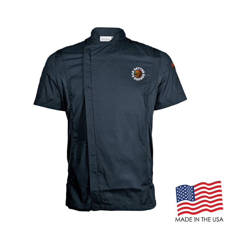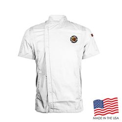Achieve your culinary dreams when you wear this fashionable Men's Short Sleeve Modern Chef Coat (EMBROIDERED LOGO). This chef coat features a zipper closure, mesh side panels, and pockets on both sleeves. The coat is a men's style and made of a Poplin Polyester/Cotton blend. Sizes run large and therefore we recommend ordering a size down or reviewing the size chart. This product can be customized with an embroidered logo to expose your brand! OVERCHARGE APPLIES FOR UPSIZES 2XL AND UP.