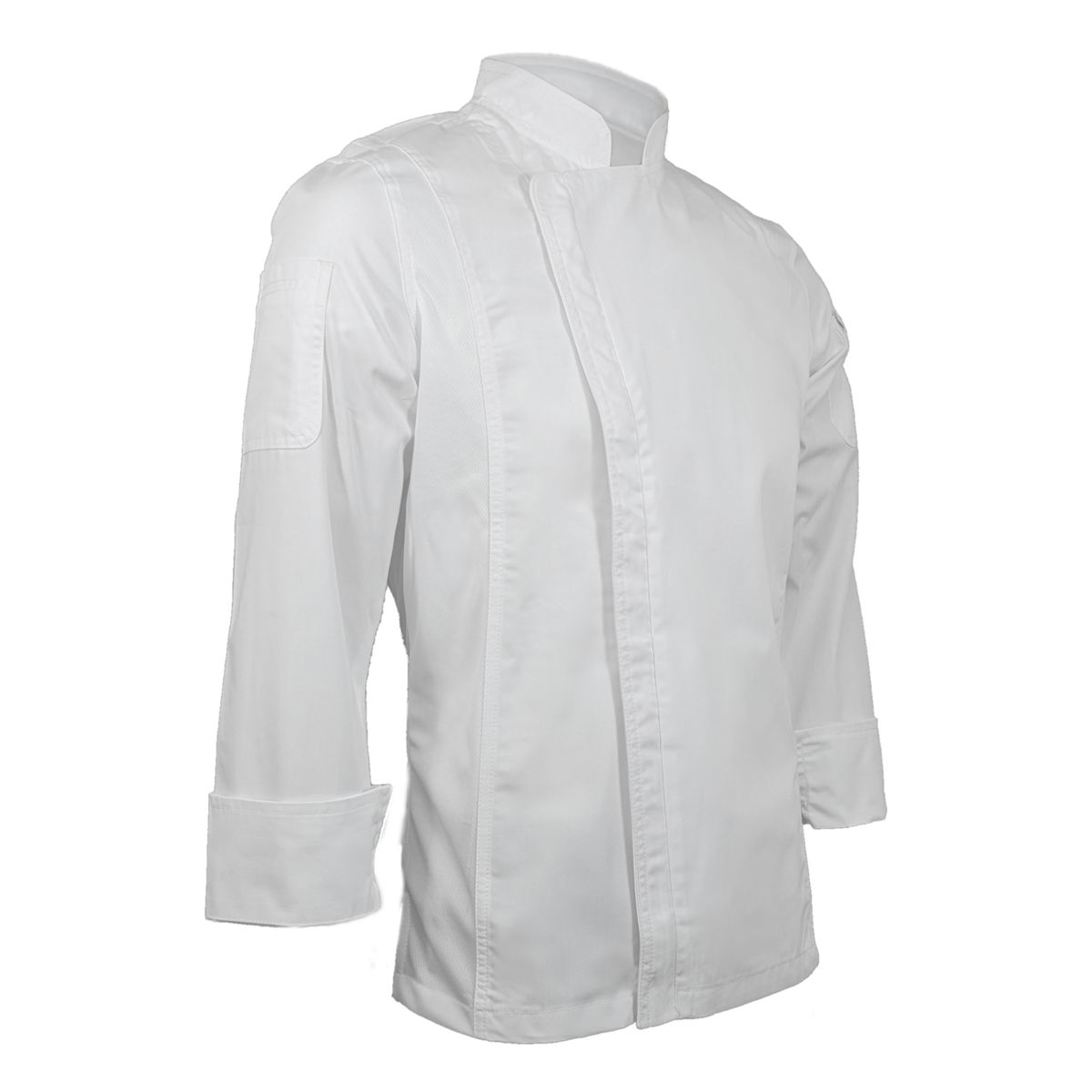 Achieve your culinary dreams when you wear this fashionable Men's Long Sleeve Modern Chef Coat (BLANK). This chef coat features a zipper closure, mesh side panels, and pockets on both sleeves. The coat is a men's style and made of a Poplin Polyester/Cotton blend. Sizes run large and therefore we recommend ordering a size down or reviewing the size chart. Product is sold blank. OVERCHARGE APPLIES FOR UPSIZES 2XL AND UP.