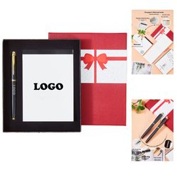 Complimentary Sample Available! Elevate your corporate gifting with this sleek gift box containing a sturdy metal signature pen and a classic paper memo pad. Measuring 7.56"x6.38", its refined design is perfect for rewarding clients, employee recognition, business conferences, or exhibition promotions. The visually appealing print enhances brand image. Single color imprint on two locations are covered. Inquire now for your free sample and pricing!
