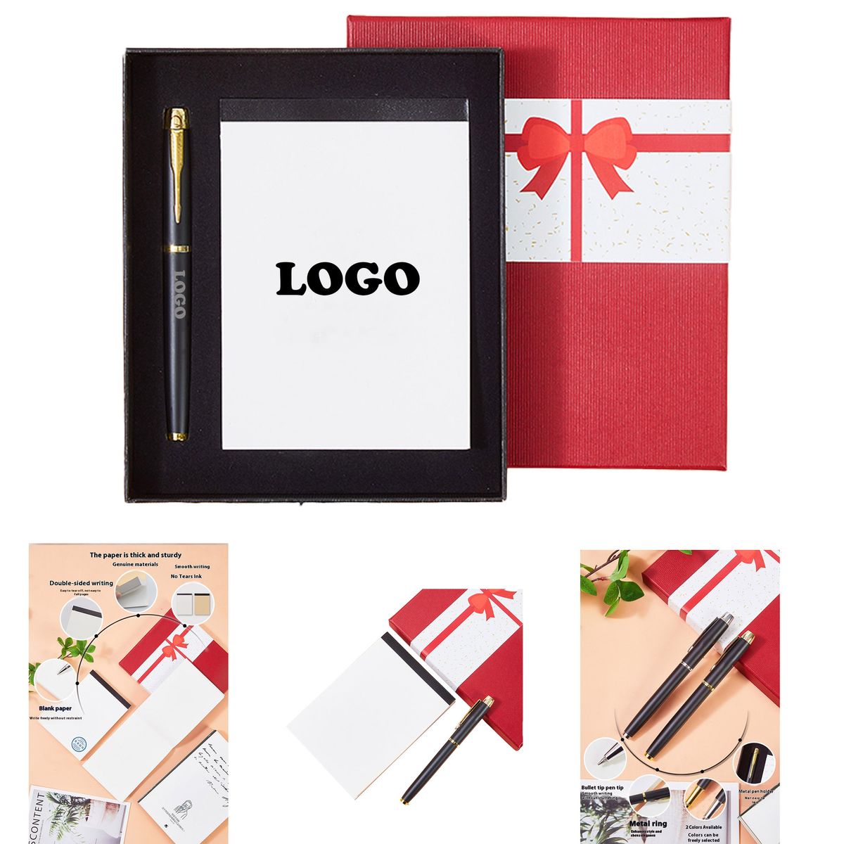 Request a Free Sample! Discover our practical and elegant gift solution: a metal signature pen and paper memo pad set in a presentation box (7.56"x6.38"). Built for daily use with a sophisticated look, it's excellent for company functions, customer gifts, sales visits, or trade events. The tasteful imprint complements its professional appearance. Screen printing is included. Get your free sample and custom quote!