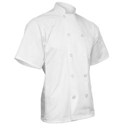 Achieve your culinary dreams when you wear this timeless White Short Sleeve Classic Chef Coat. This double breasted coat is adorned with 10 plastic pearl buttons, mitered breast pocket and a thermometer pocket on the sleeve. The coat is a unisex style and made of a Twill Polyester/Cotton blend. Sizes run large and therefore we recommend ordering a size down or reviewing the size chart. Product is sold blank. OVERCHARGE APPLIES FOR UPSIZES 2XL AND UP.