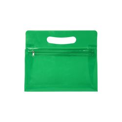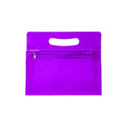 This colorful vanity bag is made of PVC material, lightweight and durable. It is suitable for makeup, travel amenities, or things needed on the go. It also features a zipper closure to keep all items inside and a die cut handle for easy carrying. It is perfect for women's expos, travel-related events and industries. Complies with Prop 65 and CPSIA.